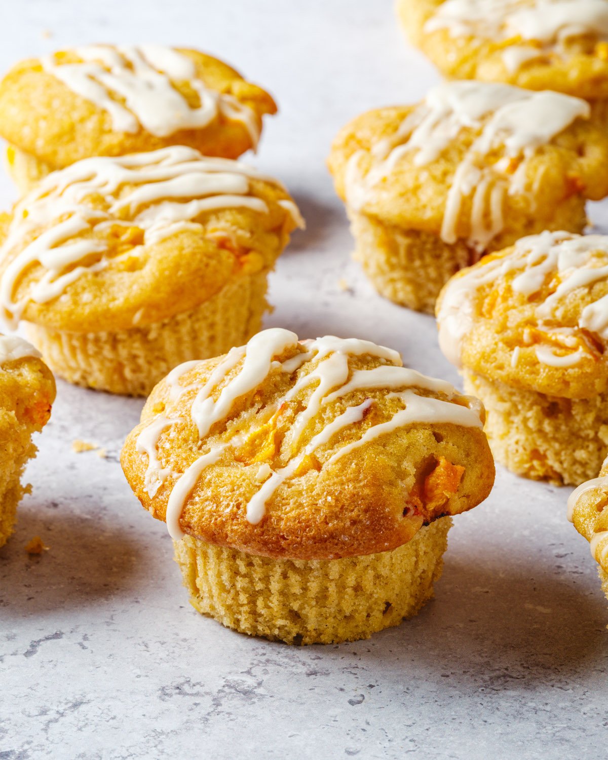 Šis vanilinis glajus suteikia šiems persikų bandeliams saldumo ir primena persikinius ledus, kuriuos tradiciškai naudotumėte trinkelių viršui. Tai mūsų 1 minutės cukraus pudros glajaus sukimasis. Štai keletas pastabų apie glajų ir kai kurios kitos užpilimo idėjos: