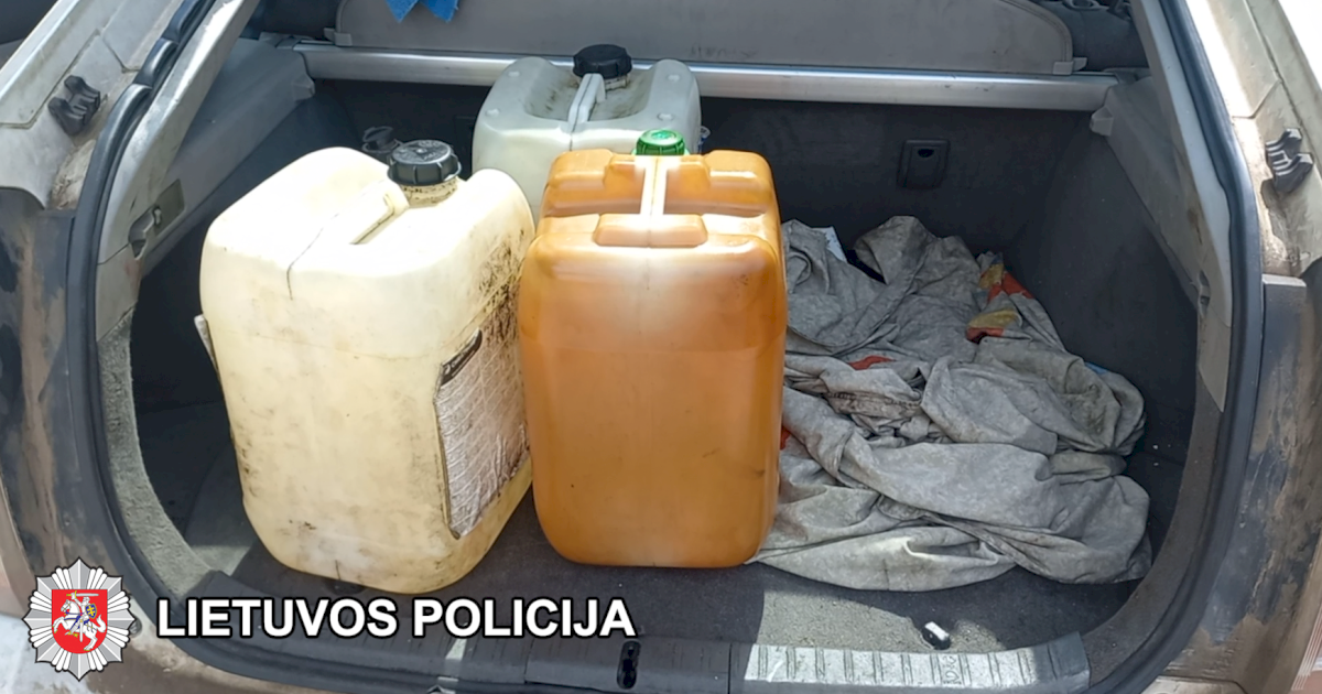Sulaikius asmenį, paaiškėjo įdomios detalės – apžiūrint iš išorės, pareigūnams užkliuvo tai, kad valstybinio numerio ženklai (kaip vėliau paaiškėjo, vogti) transportui pritvirtinti – lyg po ir būtų kažkas dar. Pareigūnų nuojauta pasitvirtino – nuėmus numerio lentelę, paaiškėjo, jog po jais paaiškėjo vairuojamam automobiliui priklausontys numeriai. Bagažinėje buvo rastos 5 talpos su viduje, kaip tikėtina, degalais, kurių tik įpsiylęs spruko.